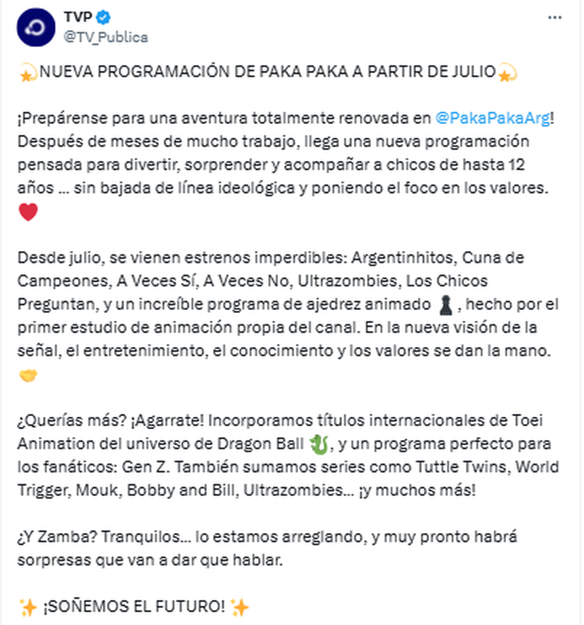 Paka Paka anunció oficialmente su nueva programación para julio de 2025 con grandes cambios. El video que publicó la TV Pública generó varias repercusiones en redes sociales, ya que anticipa un gran cambio conceptual a nivel estético y enfatizando con una visión de generación de contenidos.