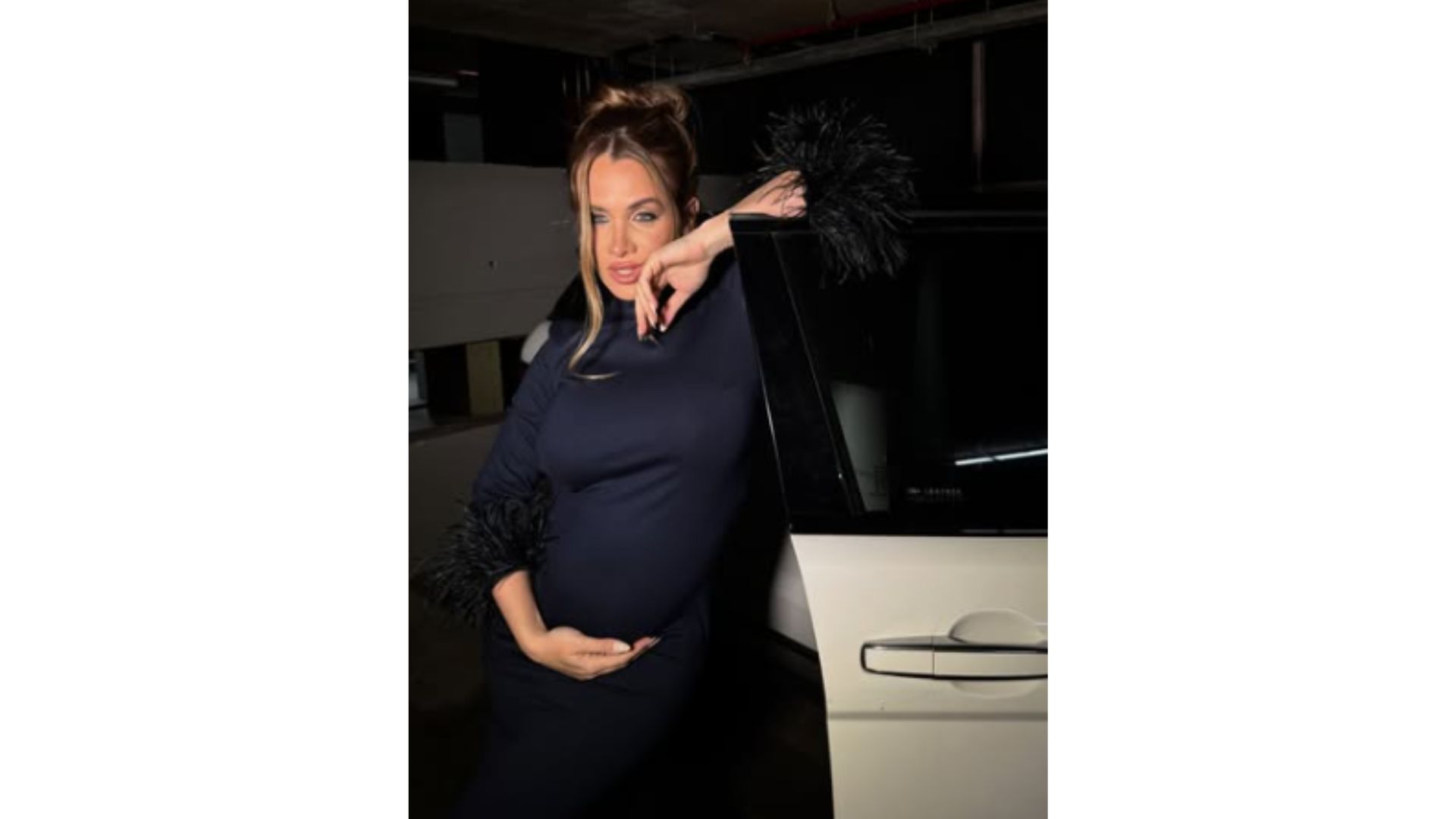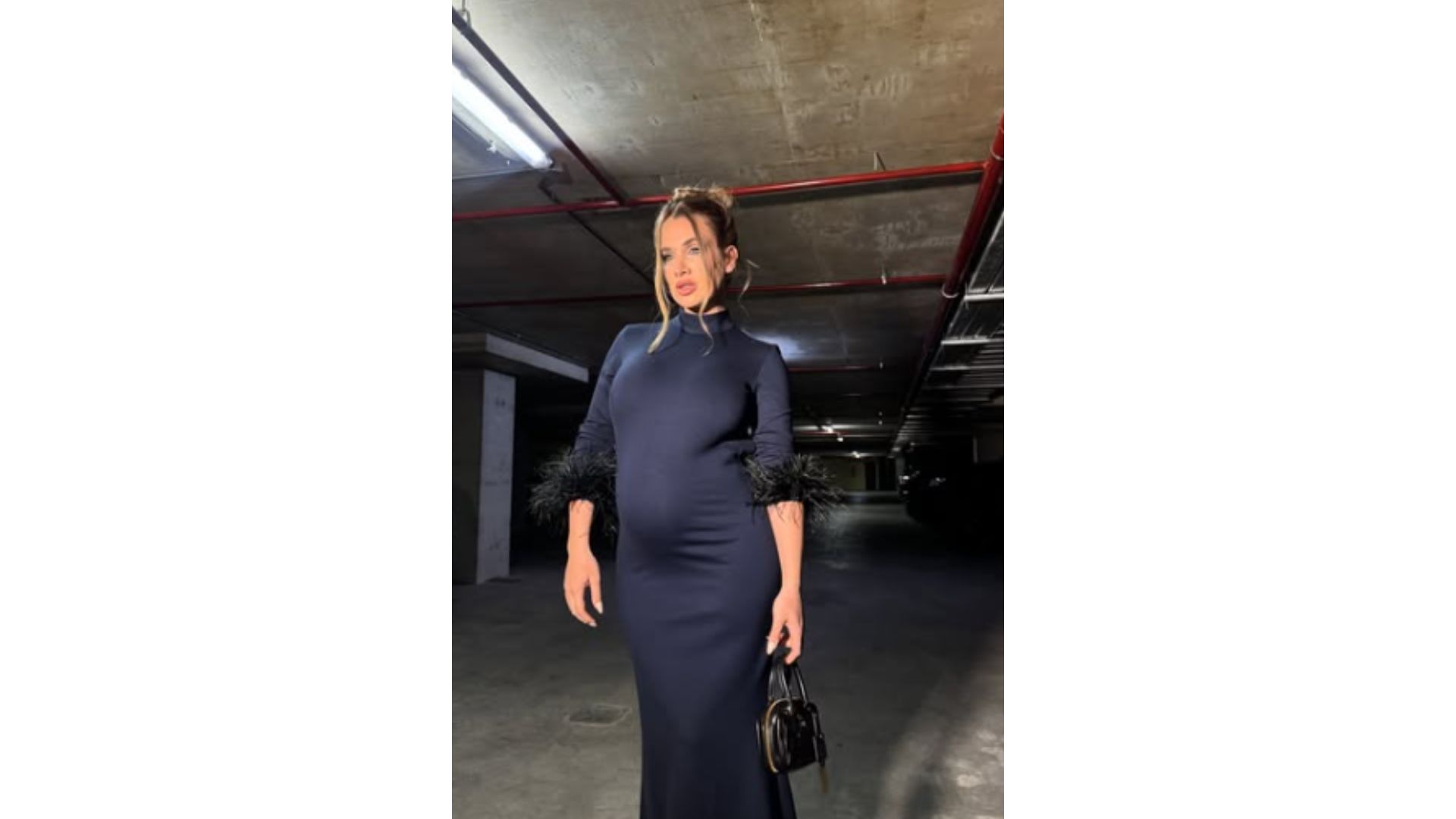 Para la ocasión, la modelo eligió un vestido largo al cuerpo en color negro, un clásico que resaltó su figura y dejó ver el crecimiento del bebé. El diseño se caracterizó por líneas simples y un corte que realzó su silueta, mostrando con orgullo su pancita.