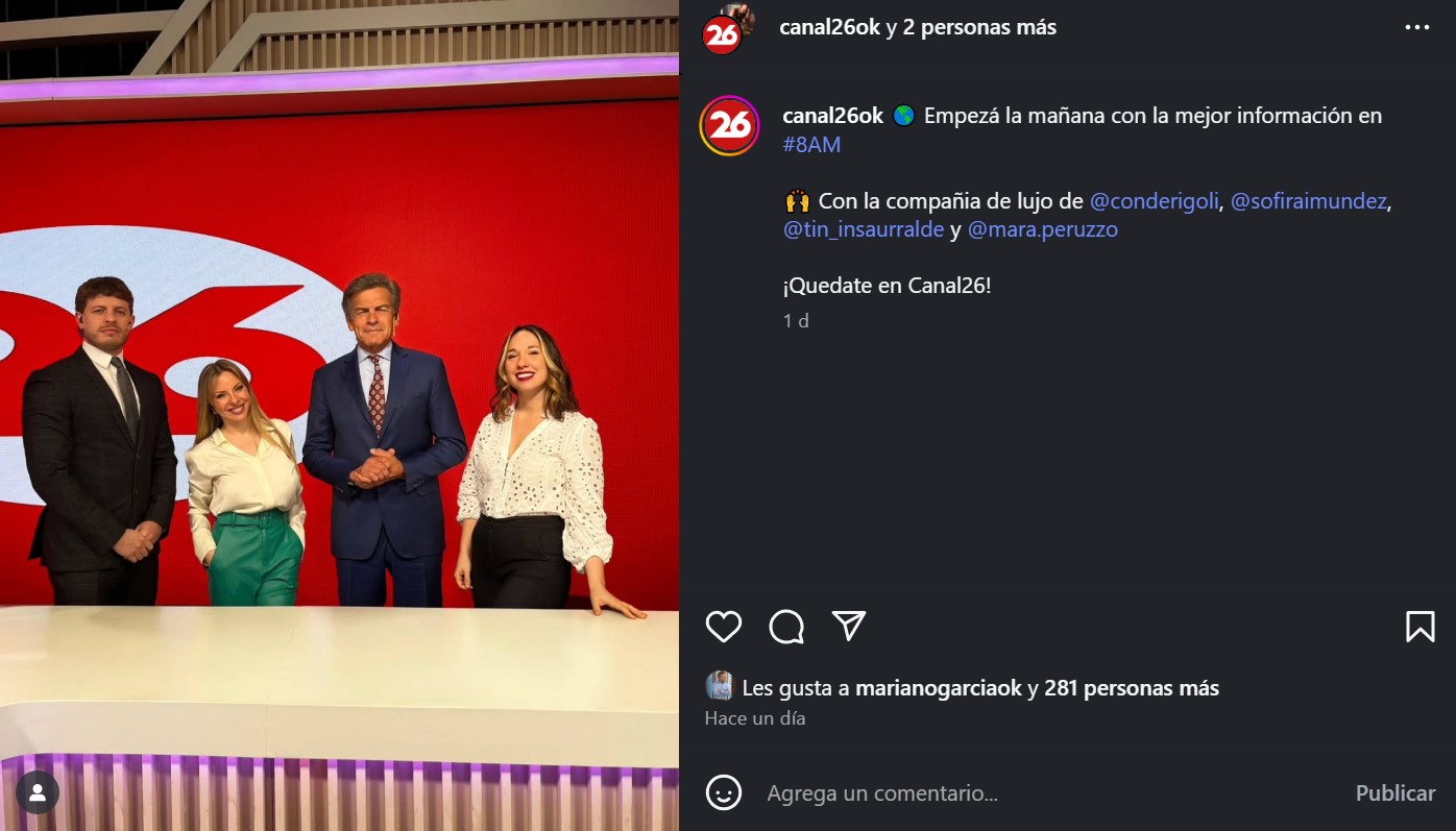 En las redes sociales de la señal de cable compartieron la primera imagen del conductor en su primer programa junto a sus compañeros e invitando a los televidentes a que se informen todas las mañanas junto a Claudio Rigoli y el equipo.