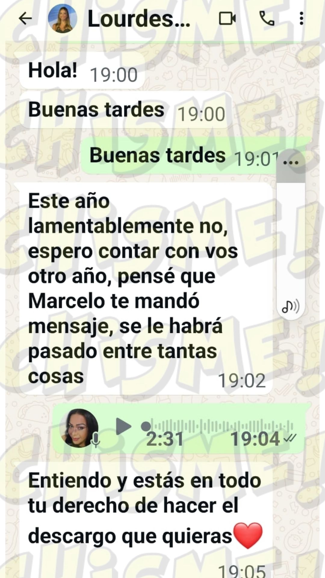 Otro de los puntos que más indignación le generó fue la forma en que le comunicaron su exclusión. “Me pone unos corazoncitos dándome una noticia muy triste para mí. ¿Cómo le vas a comunicar a alguien que no va a estar y no tener la empatía mínima de mandar un audio? Lo hacés por escrito y ponés corazoncitos. Es una burla. Ahí ya te da la pauta qué tipo de persona es Lourdes Sánchez: mala persona, egocéntrica, cero tacto”, sentenció.