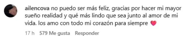 El campeón del mundo con la Selección Argentina fue el primero en dar a conocer la noticia a través de un mensaje cargado de amor y gratitud hacia su pareja: «Párrafo aparte para vos amor, re contra orgulloso de tu fuerza y amor para sobrepasar esto y darnos el regalo más grande del mundo. Te amo». Minutos más tarde, Ailén respondió con palabras que enternecieron a todos: «No puedo ser más feliz, gracias por hacer mi mayor sueño realidad y qué más lindo que sea junto al amor de mi vida. Los amo con todo mi corazón para siempre».