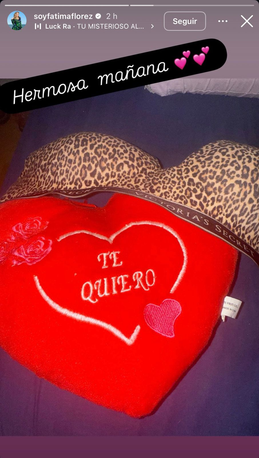 La actriz, humorista y conductora argentina Fátima Flórez generó intriga entre sus seguidores con un posteo romántico en Instagram. La artista compartió una imagen mostrando un corazón con la frase “Te quiero” junto a un corpiño, acompañada del mensaje: “Hermosa mañana”.