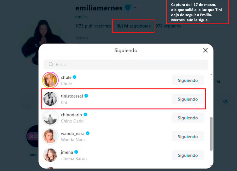 La cantante Emilia Mernes sufre un histórico desplome en su cuenta oficial de Instagram tras protagonizar un fuerte escándalo virtual con Tini Stoessel. La inesperada guerra pop desató una fuga masiva de seguidores que paralizó a la industria musical.