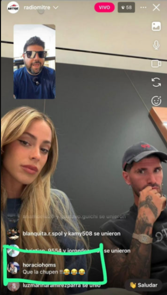 El episodio ocurrió durante un vivo del periodista Juan Etchegoyen, quien analizaba una versión vinculada al nombre elegido por la influencer para su hija recién nacida, Aitana. Mientras los usuarios comentaban en el chat del streaming, apareció un mensaje que llamó la atención de inmediato: “Que la sigan chup…”, escribió Horacio Homs acompañado de emojis de risa. La frase no tardó en circular en redes sociales, generando todo tipo de reacciones entre los seguidores.