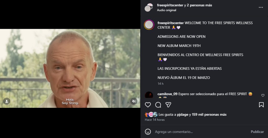 En un video, Sting detalló que ambos ingresaron a su centro de bienestar, el Free Spirits Wellness Center, donde trabajaron en su salud mental mientras grababan nueva música. Allí relató: “Hola Soy Sting. Por primera vez en la historia de la humanidad quiero darles la bienvenida a mi Free Spirits Wellness Center…”. Más adelante, recordó su encuentro con ellos: “Sin embargo, eso cambió cuando hace un año en Argentina conocí a dos artistas extraordinarios, Ca7riel y Paco Amoroso”, y reveló que aceptó sumarse al proyecto con una condición: “Acepté, por su supuesto que pedí incluirme en una de sus canciones”.