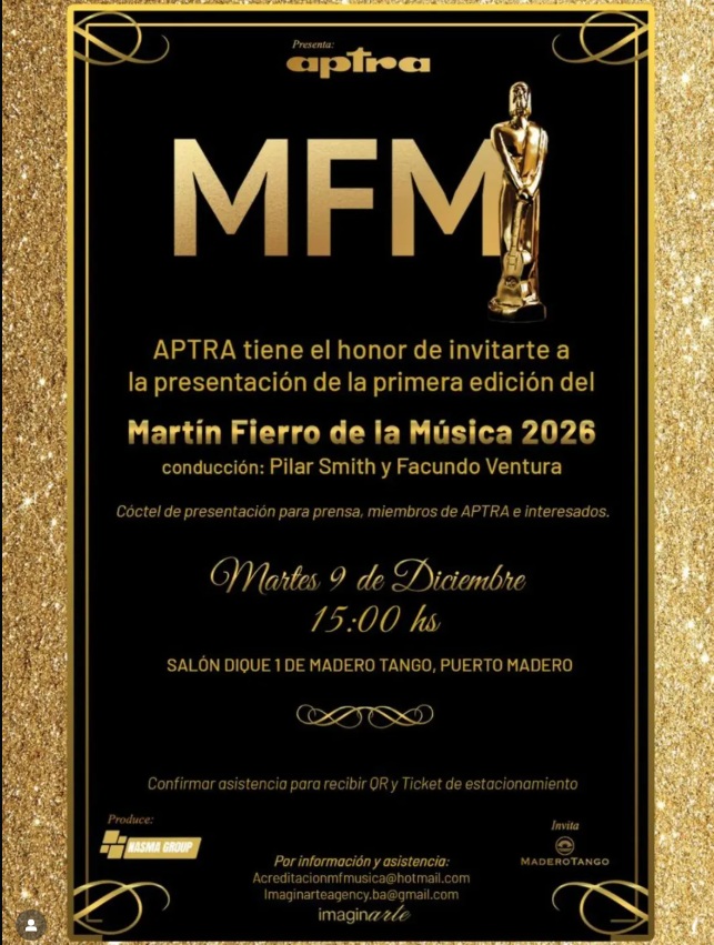 A esto se le suma el gran anuncio que es el Martín Fierro de la Música 2026: una ceremonia que inaugura un nuevo rubro dedicado exclusivamente a destacar el talento, la trayectoria y el aporte de los artistas de la escena musical nacional. La primera edición tendrá lugar el martes 9 de diciembre a las 15, en el Salón Dique 1 de Madero Tango, en Puerto Madero, con una conducción a cargo de Pilar Smith y Facundo Ventura.