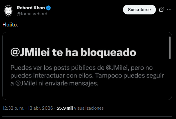 El reconocido conductor y streamer Tomás Rebord generó un enorme revuelo en las redes sociales tras revelar públicamente que el mismísimo presidente de la Nación, Javier Milei, tomó la drástica e inesperada decisión de bloquearlo en su cuenta oficial.