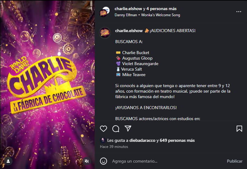 El musical, basado en la inolvidable novela de Roald Dahl y en la recordada película protagonizada por Johnny Depp, ha recorrido los escenarios más importantes del mundo desde su estreno en el West End londinense en 2013, con dirección de Sam Mendes, hasta Broadway y su exitosa gira por Estados Unidos. La versión argentina promete ser el gran acontecimiento teatral del 2026, y la búsqueda del elenco infantil es el primer paso de este acontecimiento.