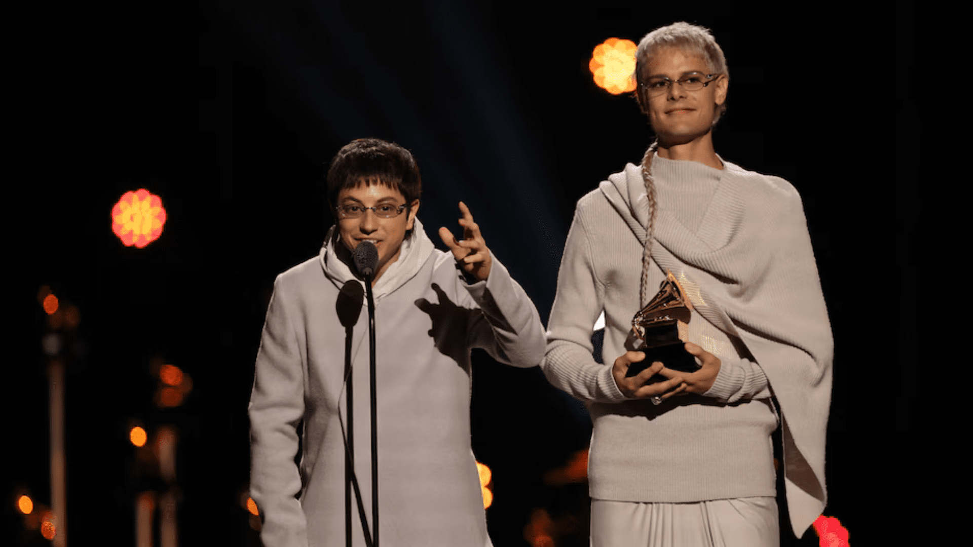 En la rueda de prensa posterior, los músicos contaron qué había pasado segundos antes de subir al escenario. “Saqué la tablet con el discurso en inglés, pero no funcionó. Así que agradecí a Dios y a toda la buena gente que nos ayudó a ser esta nueva versión de nosotros mismos”, explicó Paco Amoroso entre risas. Ca7riel acompañó con una reflexión que dejó ver el momento personal que atraviesan: “No chaos. No chaos. El caos es parte del pasado”. Lejos de frustrarse, eligieron tomárselo con humor y naturalidad.
