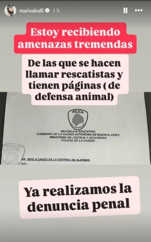 «Estoy recibiendo amenazas tremendas de las que se hacen llamar rescatistas y tienen páginas de defensa animal. Ya realizamos la denuncia penal”, explicó.