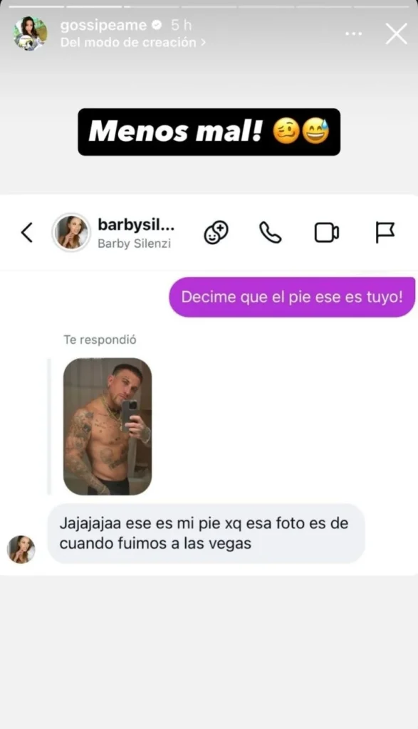 El revuelo fue inmediato. Usuarios comenzaron a analizar la imagen y a instalar la teoría de que el cantante estaba acompañado por otra mujer. Sin embargo, la respuesta llegó pocas horas después y fue directa. Consultada por Pochi, de Gossipeame, Silenzi no dudó en aclarar la situación con una frase contundente: «Jajajaja ese es mi pie. Esa foto es de cuando fuimos a Las Vegas».