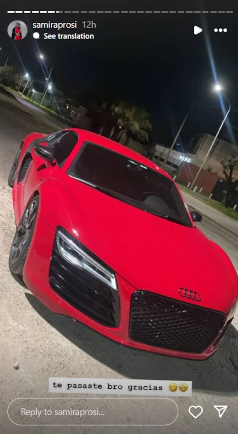 Samira compartió en su cuenta de Instagram una fotografía del impresionante Audi R8 rojo, uno de los autos más exclusivos de Argentina, que recibió como regalo. “Te pasaste, bro. Gracias”, escribió junto a la imagen del vehículo, provocando una avalancha de comentarios celebrando el gesto y destacando la cercanía que ahora mantiene con su hermano, a pesar de los años de distanciamiento.
