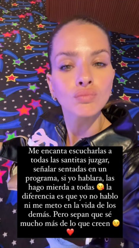 «Me encanta escucharlas a todas juzgar y señalar sentadas en un programa. Sé mucho más de lo que creen», comienza diciendo la ex «Casi ángeles» en un boomerang donde aparece ella haciendo gestos.