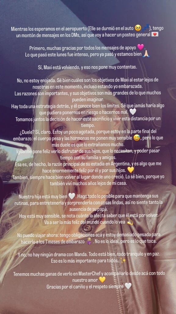 Finalmente, quiso dejar en claro que no existe ningún conflicto externo: “No hay ningún drama con Wanda. Todo está bien, todo tranquilo y en paz. Tenemos muchas ganas de verlo en MasterChef y acompañarlo desde acá con todo nuestro amor”.