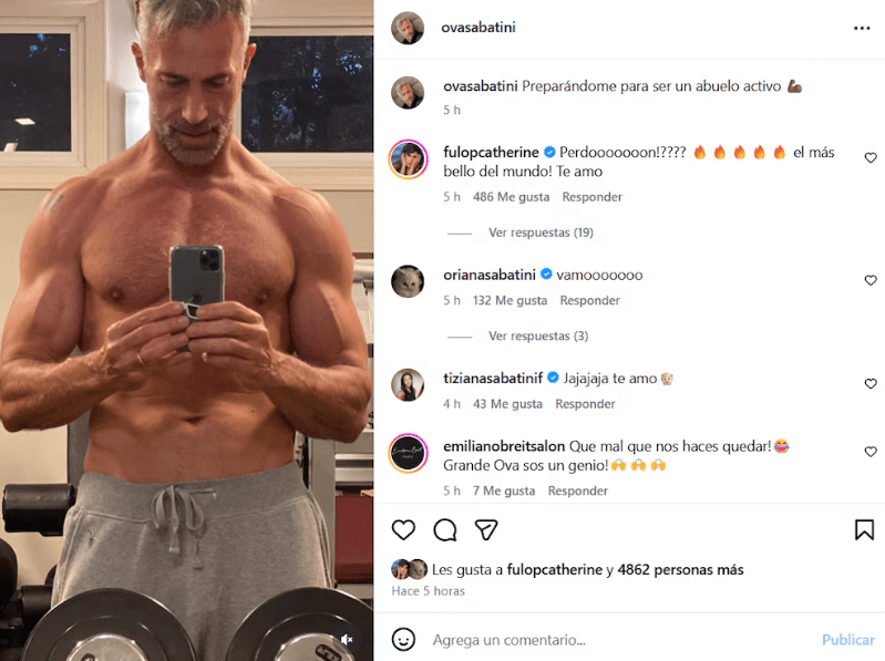 Ova Sabatini volvió a ser tendencia tras compartir una imagen súper sensual desde el gimnasio, donde posó frente al espejo, con el torso desnudo y mancuernas en mano, mostrando su preparación física. Pero lo que terminó de explotar las redes no fue solo su estado atlético, sino la frase que acompañó la postal: “Preparándome para ser un abuelo activo”, un guiño cargado de humor por la inminente llegada de su primer nieto.