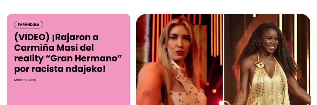 Carmiña Masi fue expulsada en las últimas horas por comentarios racistas contra Jenny Mavinga. La noticia no pasó desapercibida en medios paraguayos que comentaron en sus portales la abrupta salida por los dichos discriminatorios hacia su compañera de convivencia.