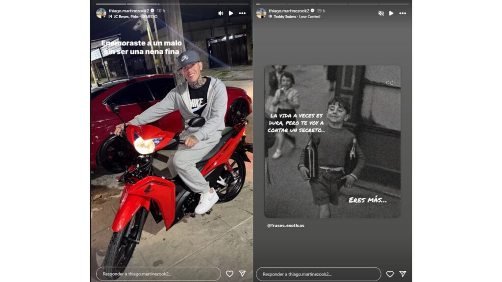Tras la confirmación de la reconciliación entre Tamara Báez y L-Gante, Thiago Martínez, expareja de la influencer, dejó entrever sus emociones a través de publicaciones en redes sociales. Con un estilo reservado pero cargado de significado, el joven utilizó frases reflexivas y fragmentos de canciones para transmitir lo que sentía tras la ruptura y el regreso de Tamara con el artista. En sus historias de Instagram, Martínez compartió mensajes sin mencionar nombres, aunque para sus seguidores el destinatario resultó evidente.