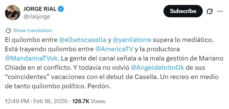 El conflicto se encendió tras comentarios de Rial en su programa Argenzuela y en su cuenta de X, donde sugirió que en el canal habría una orden para no abordar el enfrentamiento entre Casella y Yanina Latorre, justo en la semana del desembarco del conductor en la señal. Según esa versión, incluso la entrevista grabada por Ventura podría no salir al aire. El periodista lo desmintió categóricamente y confirmó que el reportaje será emitido el sábado, calificándolo como “un notón”.