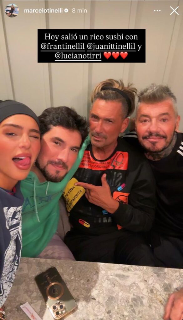 Marcelo Tinelli subió una historia con su hija Juana. En otra story, el conductor publicó una imagen con su hijo Francisco y su primo El Tirri en una reunión familiar.