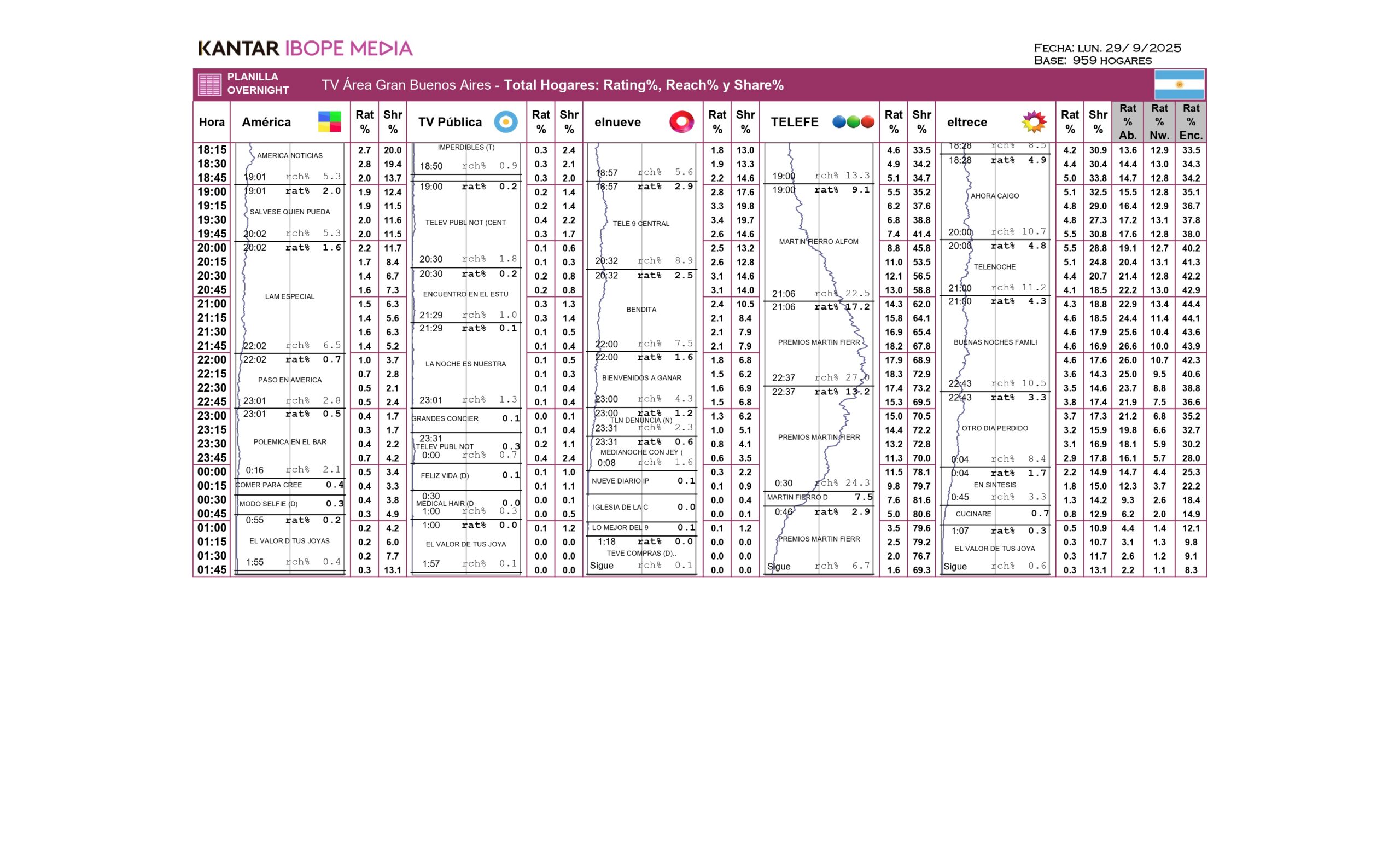 Uno de los momentos más comentados fue el homenaje a Mirtha Legrand, reconocida como “leyenda de la televisión”, que elevó la medición a 17,9 puntos. Más tarde, el premio a Gran Hermano como mejor reality empujó a Telefe a un máximo de 18,5 puntos, consolidando a la gala como lo más visto de la jornada. Sin embargo, con el avance de la noche, la audiencia descendió gradualmente: el homenaje a Jorge Lanata marcó 12,4 puntos y, pasada la medianoche, la cifra cayó a 10,9. El cierre, con Del Moro consagrándose con el Martín Fierro de Oro, encontró a la pantalla con 6,6 puntos.