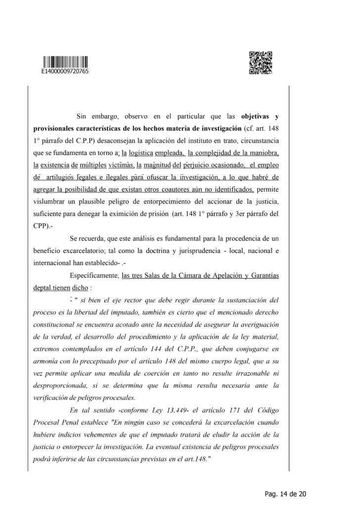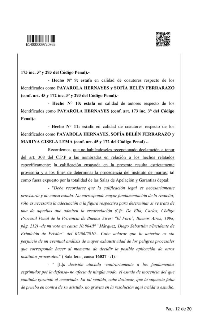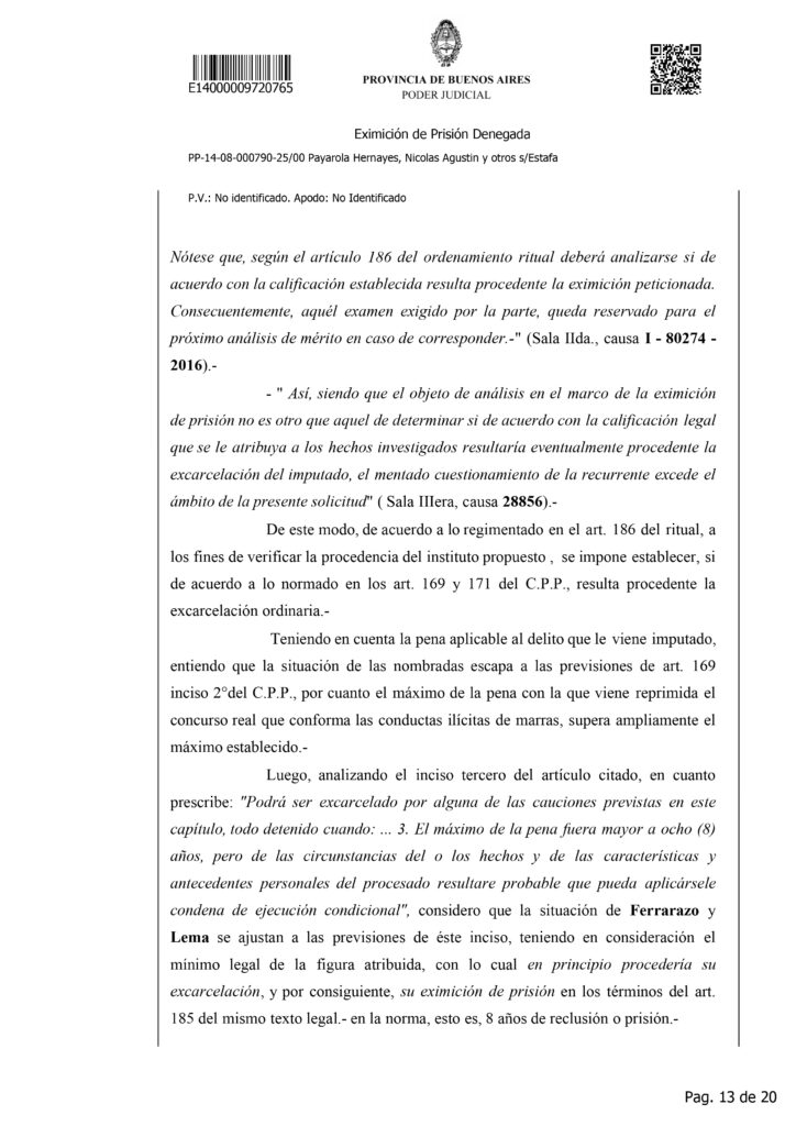 Con esta acumulación de hechos, la fiscalía lo acusa de estafas reiteradas, administración fraudulenta, retención indebida, abuso de firma en blanco y falsedad ideológica, todos en concurso ideal y real. Para el juez, la gravedad de las maniobras, la elevada suma de dinero involucrada, la multiplicidad de víctimas y el riesgo de fuga o entorpecimiento justifican que no corresponda su liberación. Así, la causa que hoy mantiene detenido a Payarola se perfila como uno de los expedientes más complejos y resonantes por fraude profesional de los últimos años.