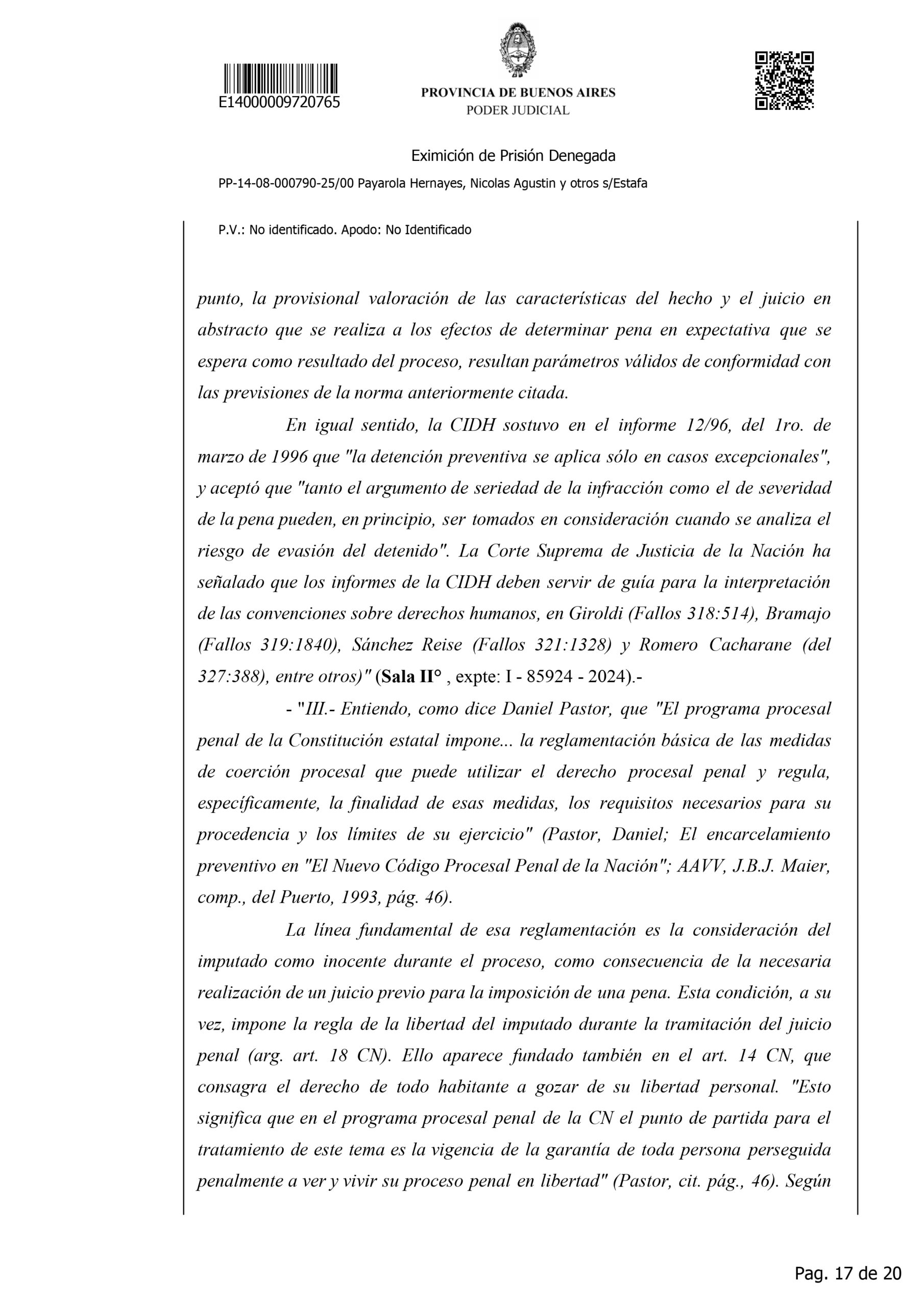 Con esta acumulación de hechos, la fiscalía lo acusa de estafas reiteradas, administración fraudulenta, retención indebida, abuso de firma en blanco y falsedad ideológica, todos en concurso ideal y real. Para el juez, la gravedad de las maniobras, la elevada suma de dinero involucrada, la multiplicidad de víctimas y el riesgo de fuga o entorpecimiento justifican que no corresponda su liberación. Así, la causa que hoy mantiene detenido a Payarola se perfila como uno de los expedientes más complejos y resonantes por fraude profesional de los últimos años.
