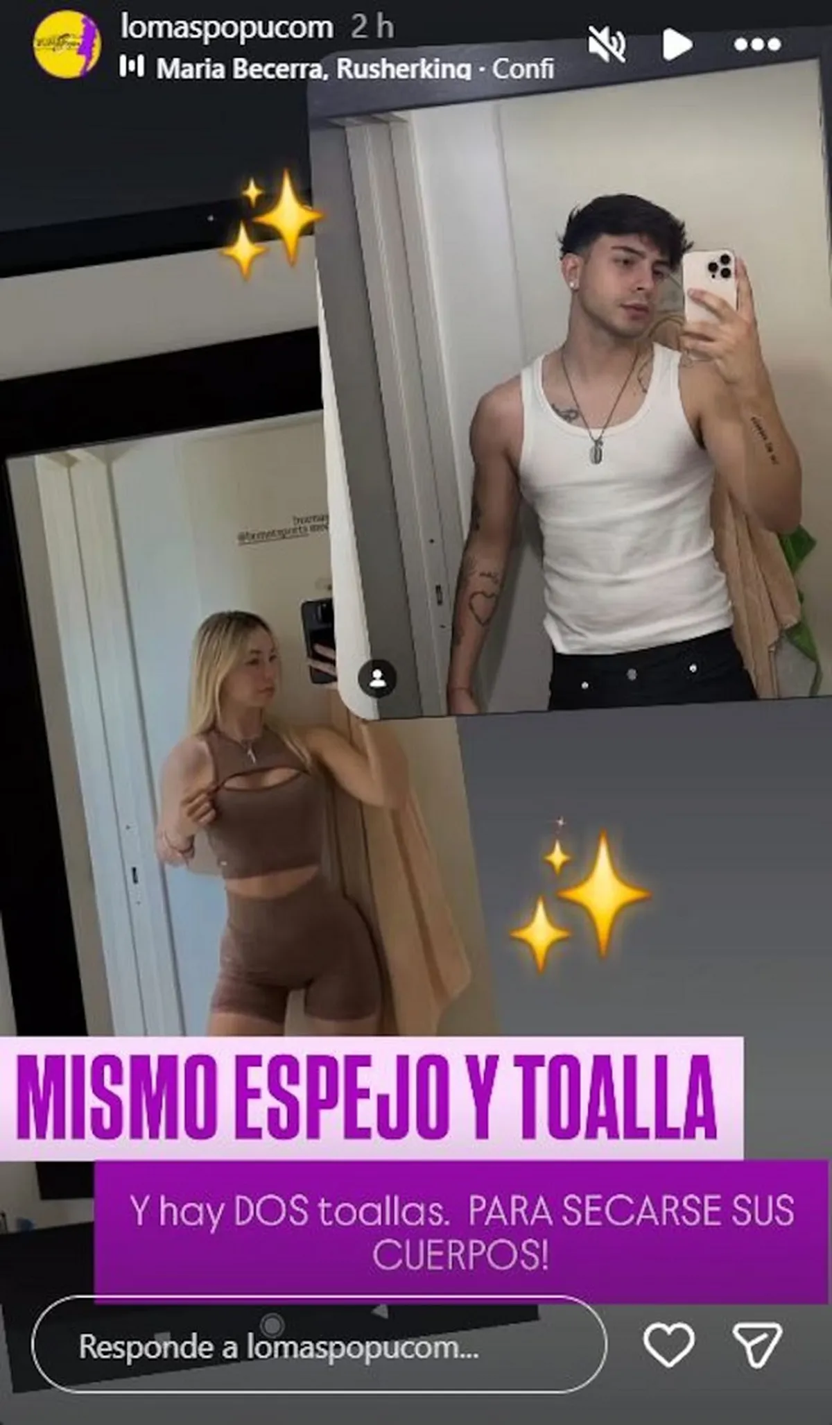 En las últimas horas, varias imágenes comenzaron a circular en redes sociales y encendieron las sospechas sobre este incipiente vínculo. El sitio de Instagram lomaspocum compartió fotos de ambos donde aparecen en espacios muy similares, lo que llamó la atención de los seguidores. Una usuaria incluso escribió: “Creo que pasa algo entre Rusherking y Stef Jegier, la azafata de Guido”, y otra agregó sobre una coincidencia visual: «Mismo espejo y toalla. Y hay dos toallas para secarse sus cuerpos”.