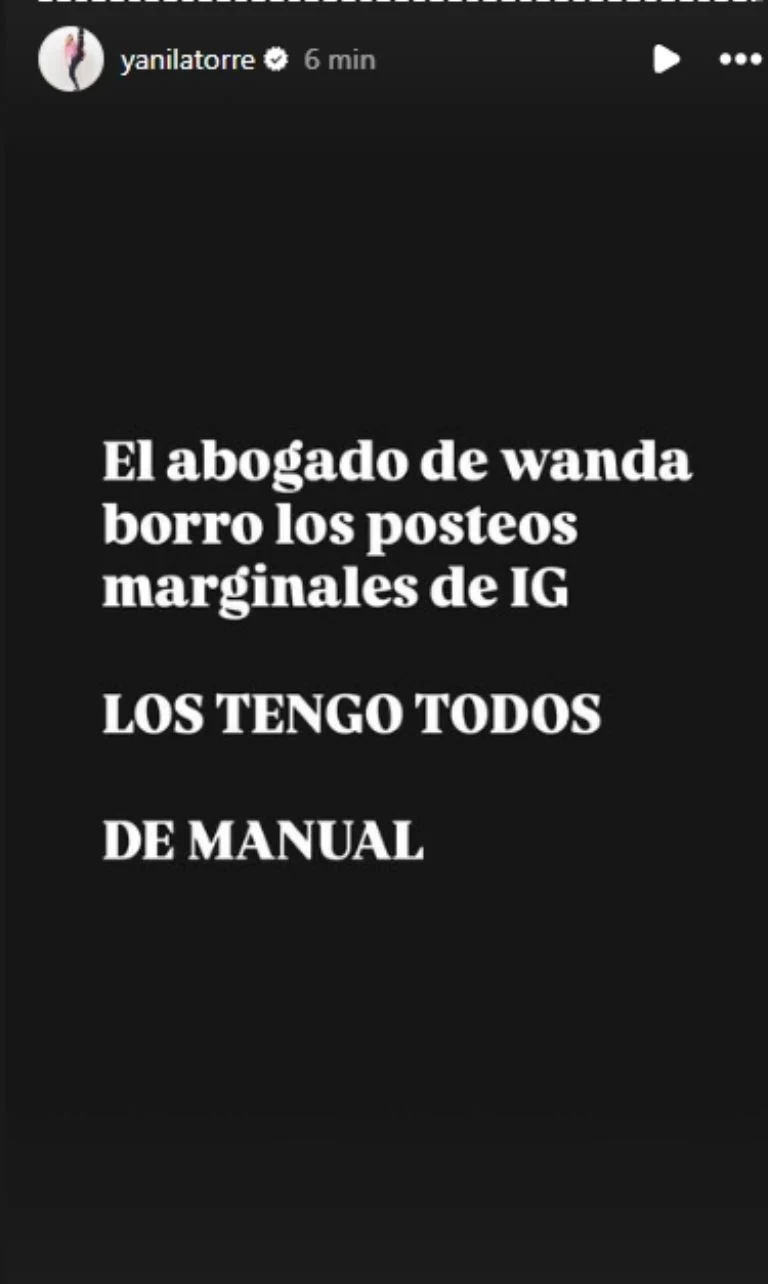 Minutos después, la periodista reveló que Palombo había eliminado los posteos que ella había mostrado: “El abogado de Wanda borró los posteos marginales de IG. Los tengo todos de manual”, escribió con picardía. Y para cerrar, lanzó una última frase cargada de ironía: “Amo que estén pendientes de lo que digo y subo”. Una vez más, Yanina Latorre demostró que con solo un par de historias puede convertir un simple recorrido por Instagram en un auténtico escándalo digital.