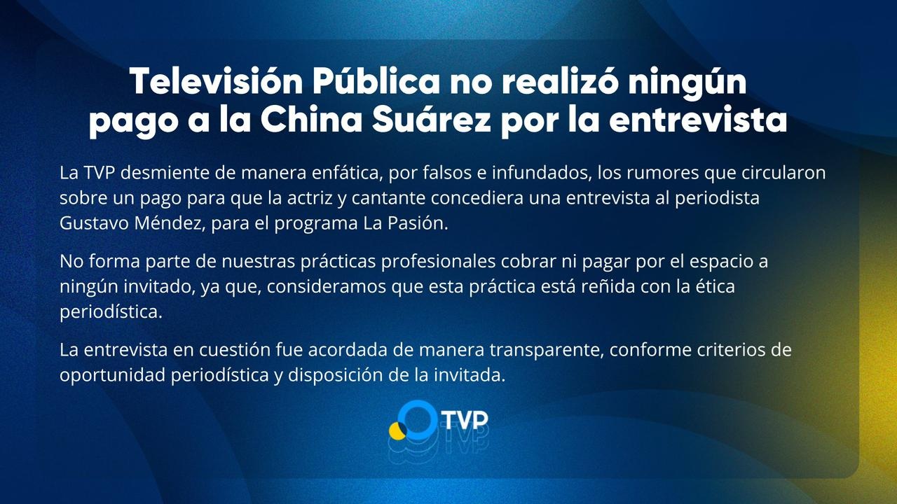 Esta noche debutó el programa La Pasión en el canal de streaming de la TV Pública conducido por Gustavo Méndez. Eugenia La China Suárez fue la primera invitada, y durante todo el día circuló la información de que habría cobrado 15 mil dólares. La señal emitió un contundente comunicado contando la realidad de lo sucedido.