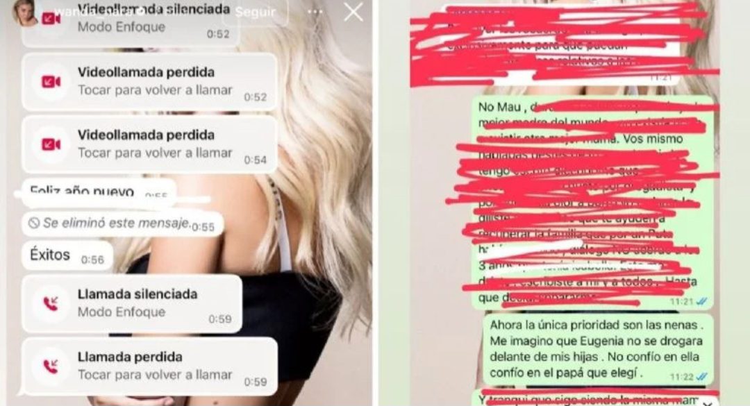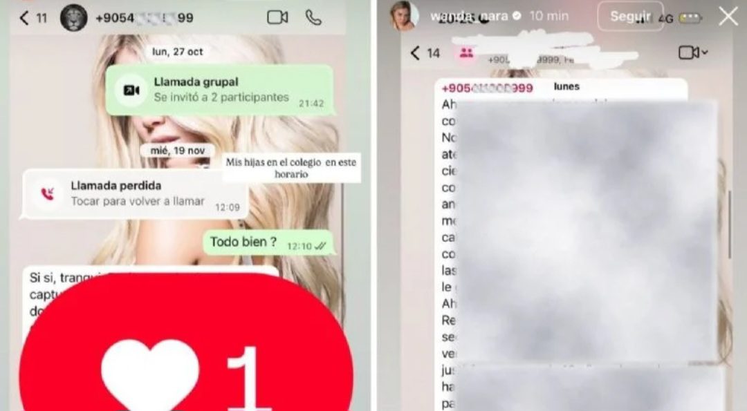 La primera imagen que publicó corresponde a una llamada perdida de Mauro Icardi hacia ella. En el chat, Wanda le consulta si estaba todo bien, dejando constancia del contacto iniciado por el futbolista. Junto a esa captura, la mediática explicó el motivo por el cual no pudo atender al recibir la llamada: sus hijas se encontraban en el colegio.
