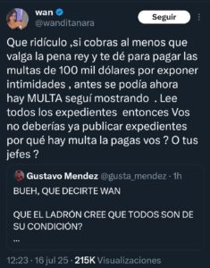 «Le encanta exponerse y mostrar y pasear y filtrar fotos y llamar a “amigos” periodistas para que suban esas fotos. Cuando de mil maneras expresaron no querer tener relacion» comentó. .