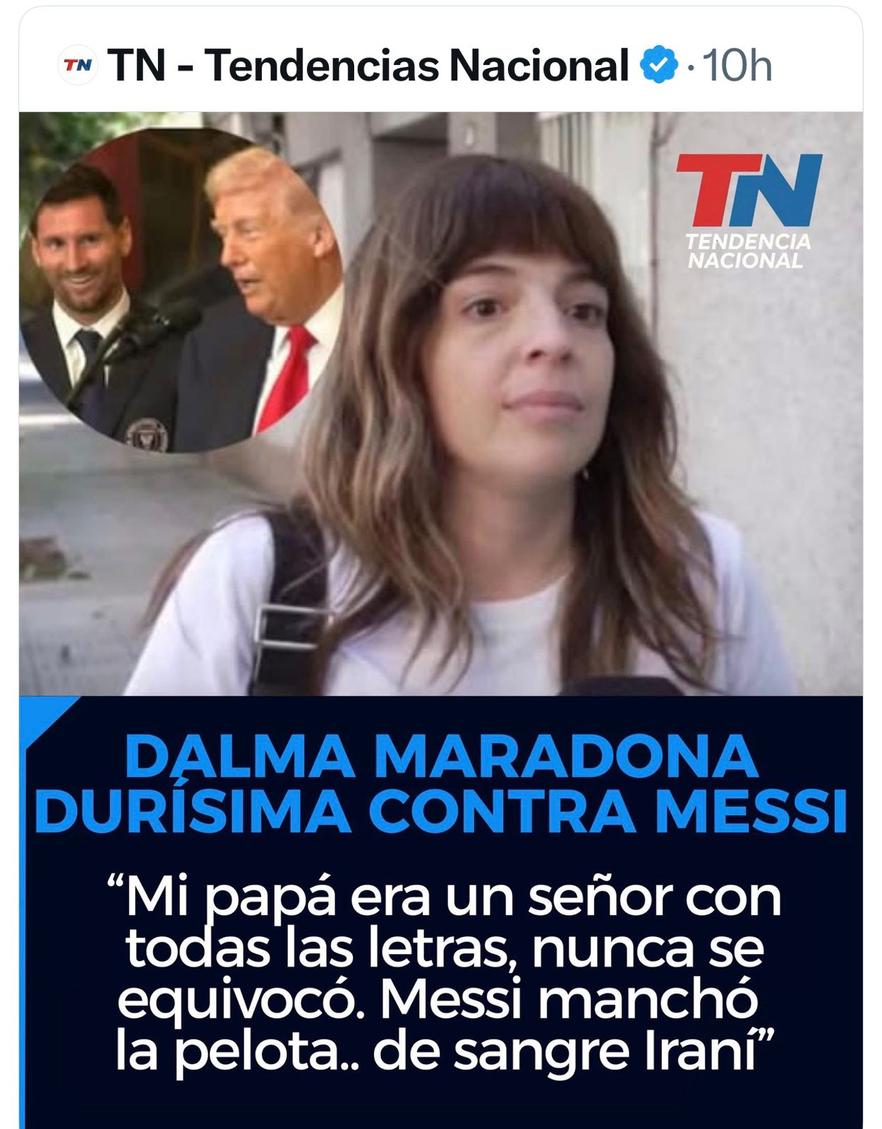 La situación comenzó cuando Latorre citó en sus redes un supuesto mensaje atribuido a Dalma Maradona que criticaba a Lionel Messi y defendía a Diego Maradona. El texto que circulaba decía: “DALMA MARADONA DURÍSIMA CONTRA MESSI. ‘Mi papá era un señor con todas las letras, nunca se equivocó. Messi manchó la pelota… de sangre iraní’”. Sin embargo, la publicación fue señalada rápidamente como falsa y generó críticas hacia quienes la replicaron sin verificar su origen.